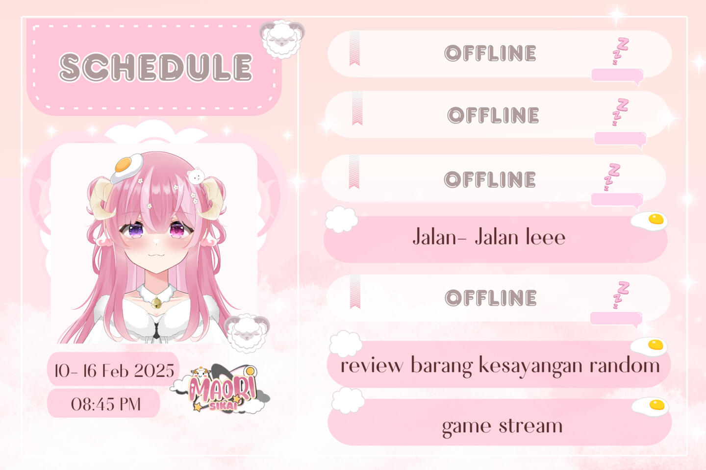 Freetalk+ Game Overlay (include panel) 50k Freetalk+ Game Overlay simple animation 85k Banner 15k Schedule 20k Debut Invitation 10k Simple MV 100-150k